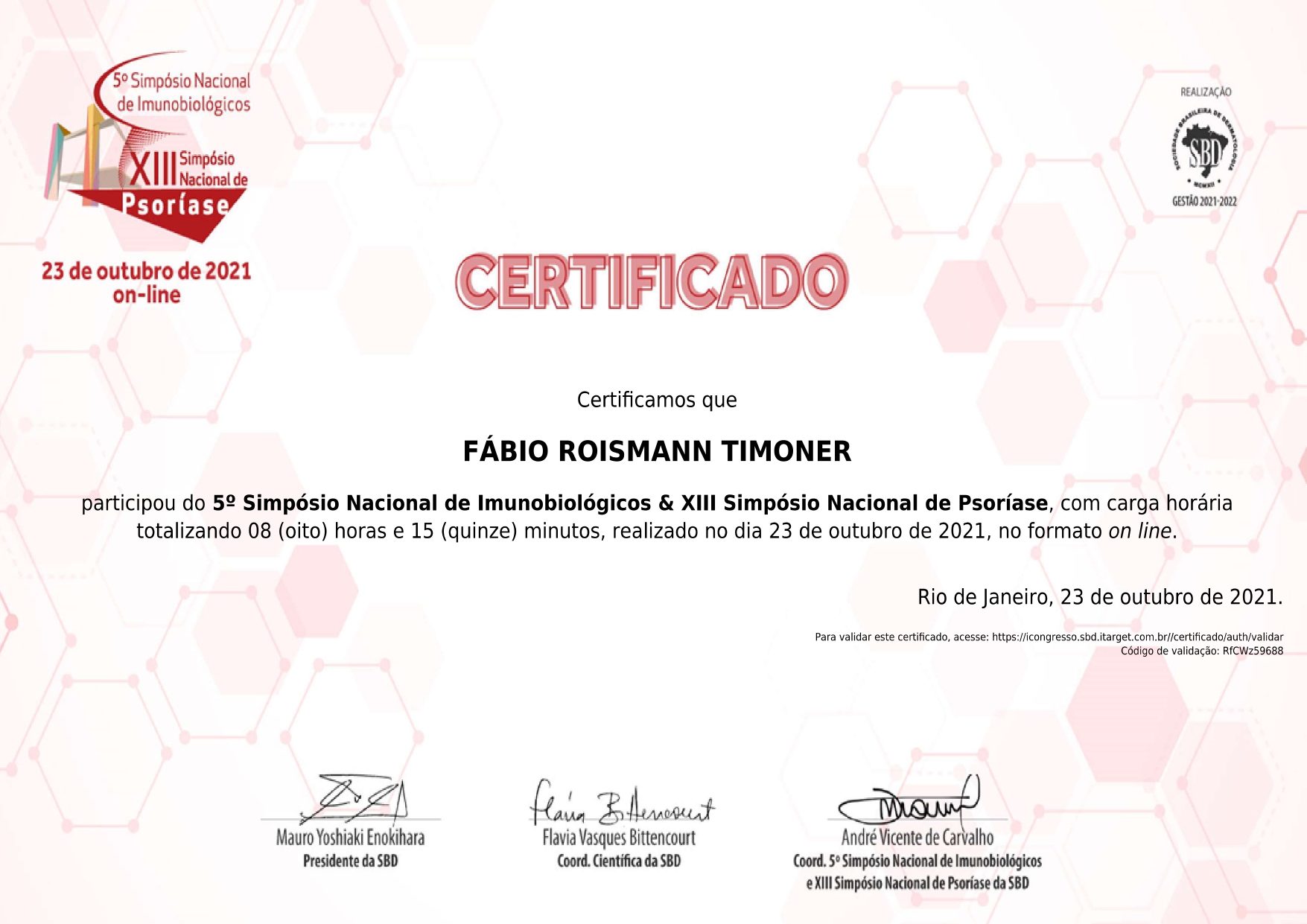 Dr FABIO TIMONER em atualização constante CERTIFICADO PSORIASE